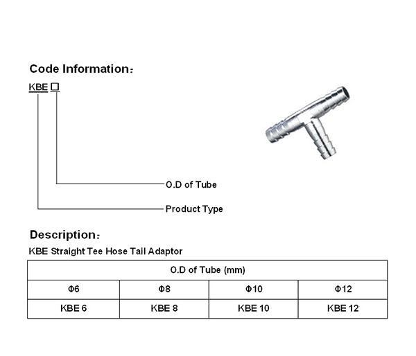 Straight Tee hose tail adaptor